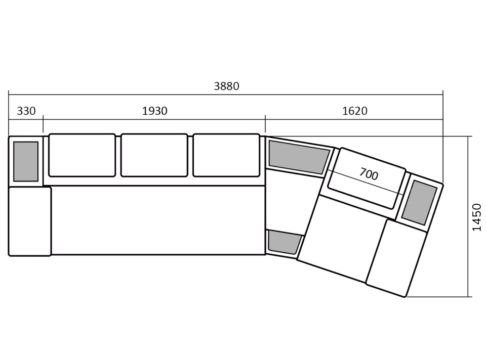 Размер (ш × г × в): 3880 × 1450 × 1050 мм