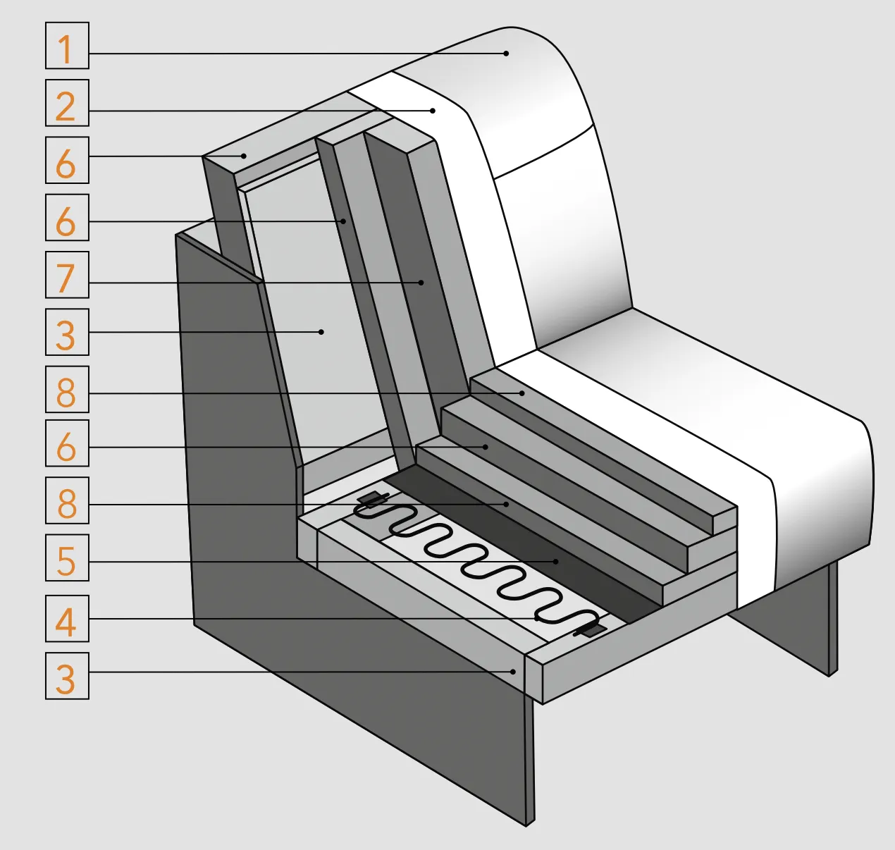Пружины, используемые в сиденье для обеспечения эластичности и комфорта.