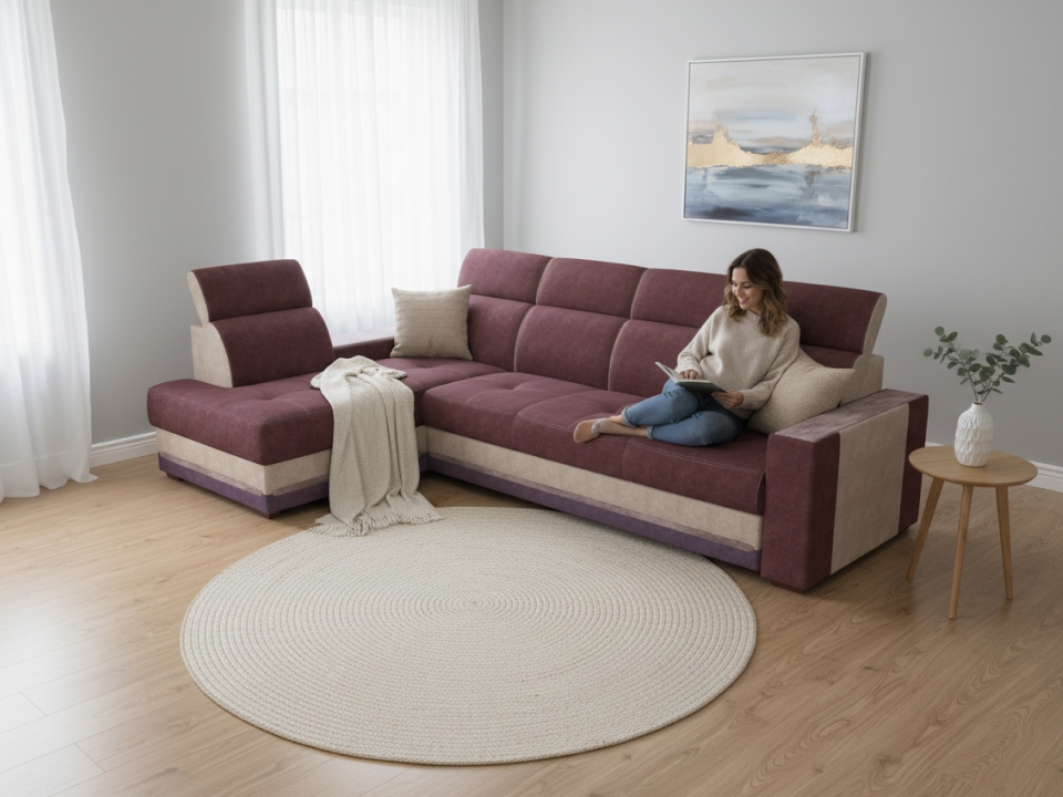 Мягкая и приятная на ощупь ткань, которая придает дивану роскошный и элегантный вид.