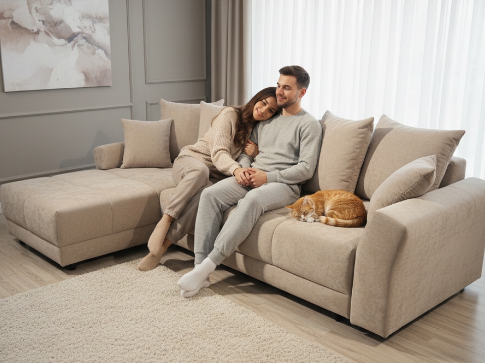 Мягкая и приятная на ощупь ткань, которая придает дивану роскошный и элегантный вид.