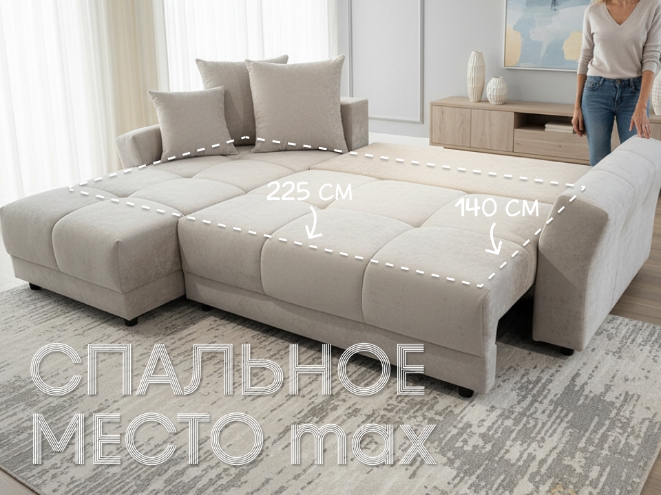 Диван Ганновер 2 угловой 282 см бежевый
