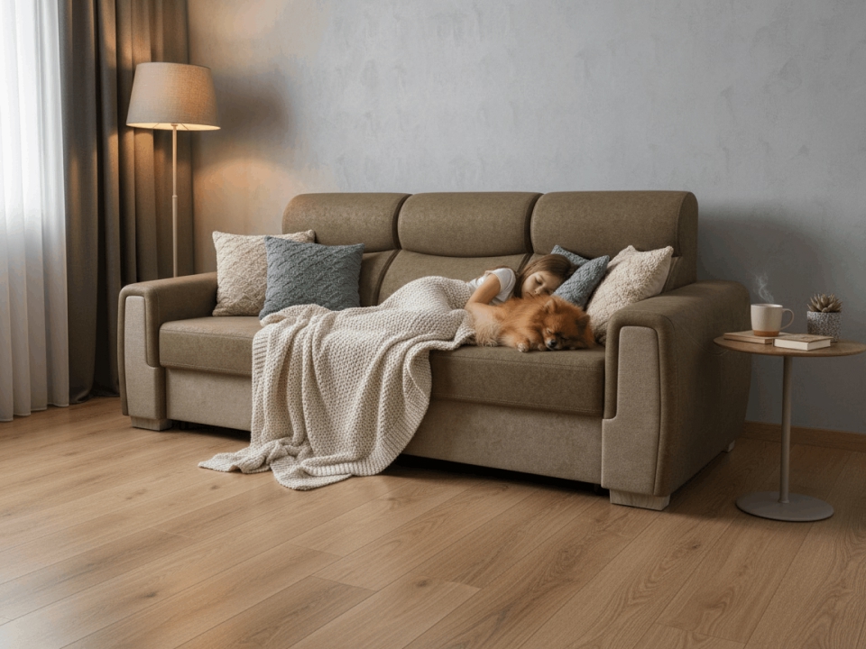 Приятная на ощупь, высокая износостойкость, легкость в уходе, устойчивость к пятнам и выцветанию. Микровелюр также хорошо пропускает воздух и сохраняет тепло, что делает его идеальным выбором для уютных интерьеров.