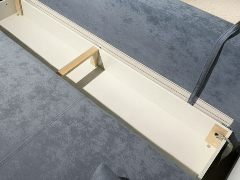 «Тик-Так» – принцип работы прост: по первому щелчку («тик») диван раскладывается, по второму («так») – возвращается в исходное вертикальное положение. Сначала сиденье поднимается, затем перемещается вперед и, наконец, плавно опускается. В образовавшуюся нишу, которая также является ящиком для белья, укладывается спинка дивана.