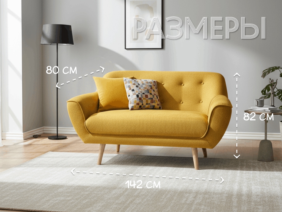 Диван Рикардо 2 (вариант 2) прямой нераскладной 142 см желтый